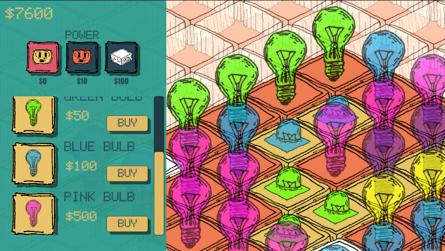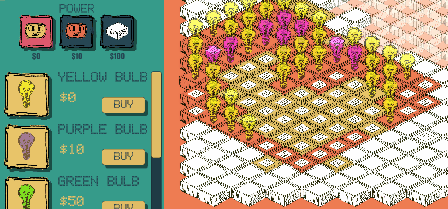 It works similarly to casual farming games - you have to plant bulbs, power them, and they grow to generate light. I was thinking of how power arrays connect, and imagined an array of linked lightbulbs.