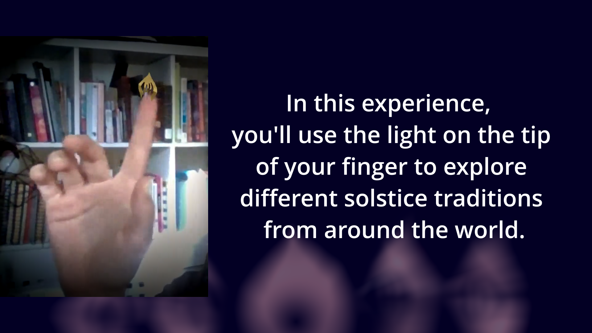 Gently wave your hand across paper artifacts, bringing them to life with informative narratives. Each artifact represents a unique winter solstice tradition from various cultures around the world: from ancient rituals celebrating the rebirth of the sun to modern-day customs that bridge the past and the present.